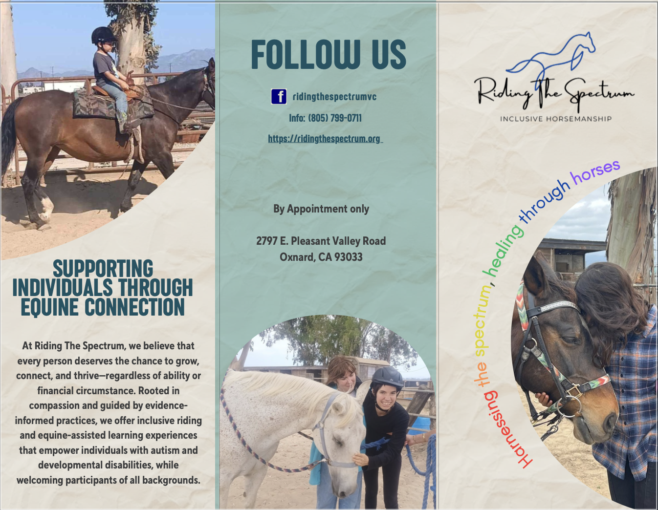 At Riding The Spectrum, we believe that every person deserves the chance to grow, connect, and thrive—regardless of ability or financial circumstance. Rooted in compassion and guided by evidence-informed practices, we offer inclusive riding and equine-assisted learning experiences that empower individuals with autism and developmental disabilities, while welcoming participants of all abilities and backgrounds.